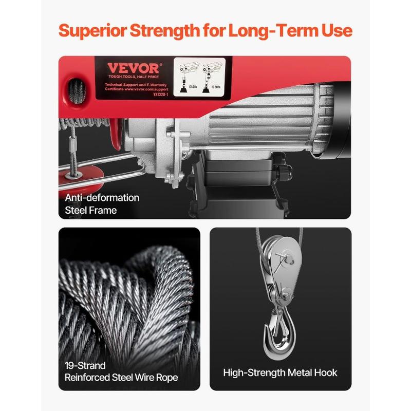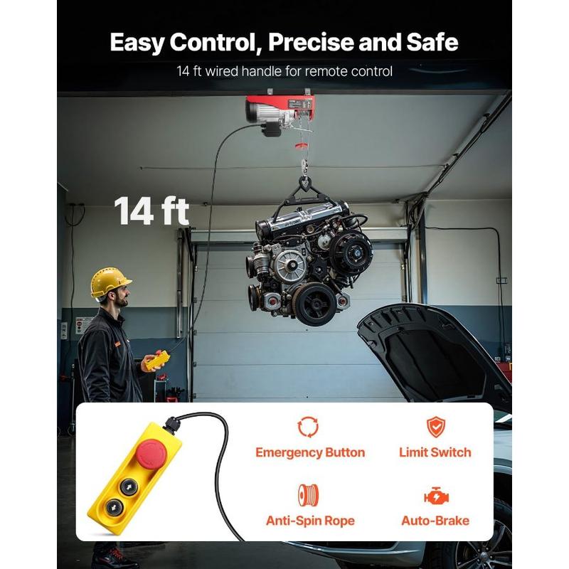 VEVOR 2200lbs Electric Hoist w/14ft Wired Remote Control, 110v Electric Hoist with 40ft Single Cable Lifting Height, for Garage Warehouse Factory Control for Garage, Shop, Hotel, HomeVEVOR 2200lbs Electric Hoist w/14ft Wired Remote Control, 110v Electric Hoist with 40ft Single Cable Lifting Height, for Garage Warehouse Factory Control for Garage, Shop, Hotel, Home