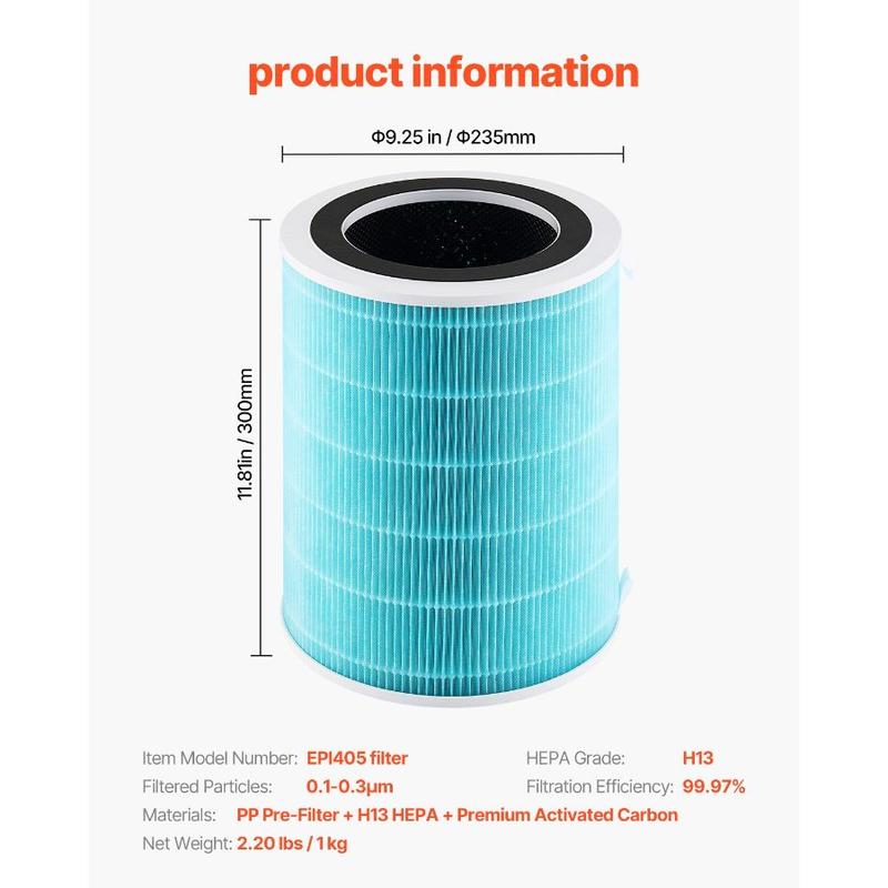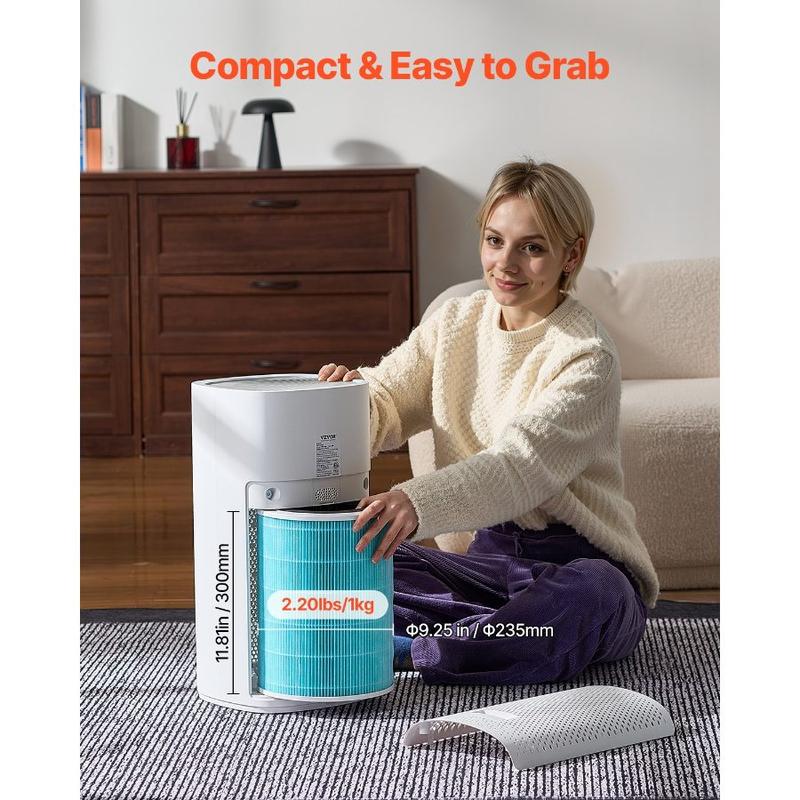VEVOR Air Purifier Replacement Filter, H13, 3 - in - 1 Compact Lightweight Replacement Filter with Sturdy PET Pre - Filter, Easy - to - Grab Purifier Filter with Activated Carbon, Fit for Square PurifierVEVOR Air Purifier Replacement Filter, H13, 3-in-1 Compact & Lightweight Replacement Filter with Sturdy PP Pre-Filter, Easy-to-Grab Purifier Filter with Activated Carbon, Fit for Cylindrical Purifier Powerful Purification Filter Efficient Adsorption Design Easy to Clean Reset