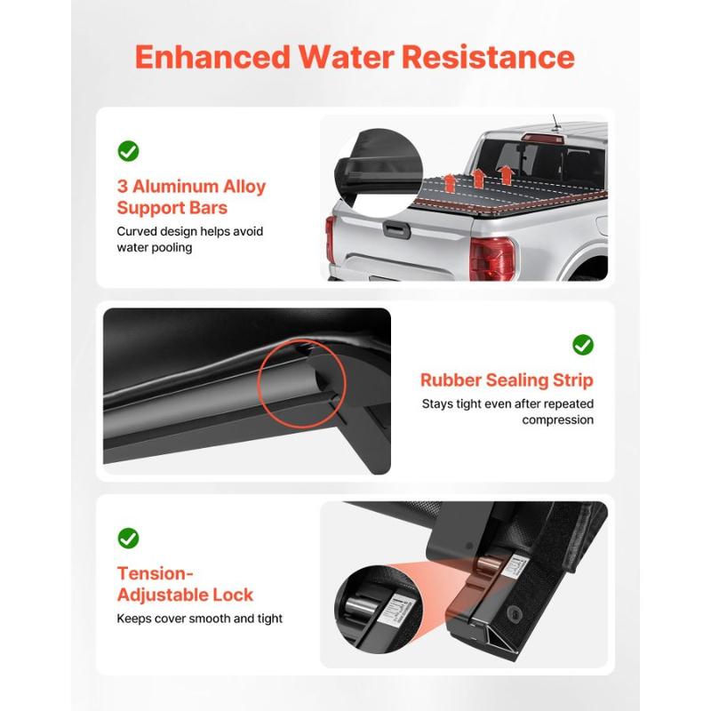 VEVOR Soft Roll - Up Truck Bed Tonneau Cover, Compatible with 2019 - 2024 Dodge Ram 1500 Classic, 2003 - 2025 Ram 2500 3500, Fits 6.4 ft (6 ft 4 in/76 in) Bed, PVC Tonneau Cover with Aluminum Alloy BarsVEVOR Soft Roll-Up Truck Bed Tonneau Cover, Compatible with 2022-2025 Ford Maverick, Fits Styleside 4.5 ft (4 ft 6 in/54 in) Bed, Triple-Layer PVC Tonneau Cover with Three Aluminum Alloy Support Bars Precision Fit Ready for Any Weather Heavy-Duty Aluminum Bars Tension Locking
