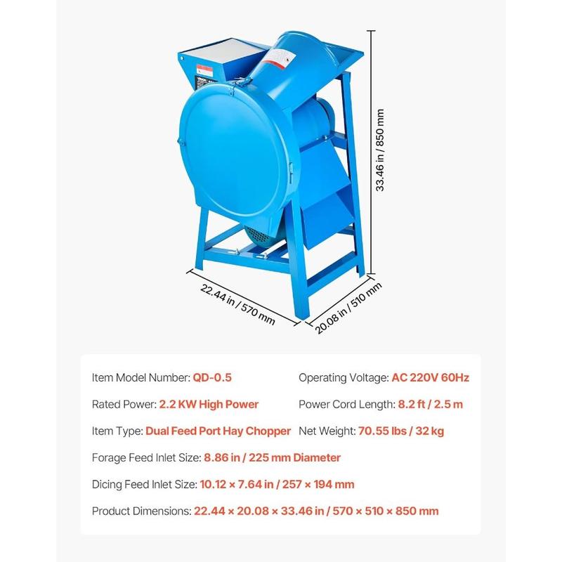 VEVOR Hay Chopper, 2200W Corn Straw Chopper with Double Feed Ports, 1719lbs/h Capacity Forage Corn Stalks Cutting Machine, 220V Multifunctional Grass Feed Pulverizer for Livestock, Farm, RanchVEVOR Hay Chopper, 2200W Corn Straw Chopper with Double Feed Ports, 1719lbs/h Capacity Forage Corn Stalks Cutting Machine, 220V Multifunctional Grass Feed Pulverizer for Livestock, Farm, Ranch