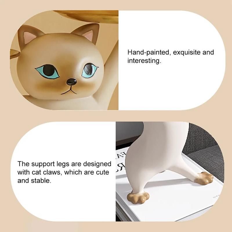This exquisite resin cat sculpture is equipped with two golden trays, which can be placed at the entrance or living room to store keys and snacks. It can not only meet daily home storage needs, but also can be used to decorate the home. It is very creative.
