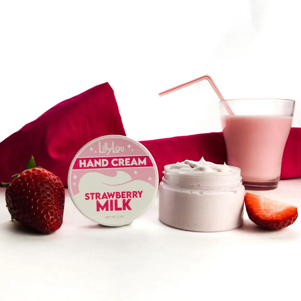 Introducing our Strawberry Milk Hand Cream, specially crafted to provide deep hydration without a greasy feel. Enriched with Olive Oil and Cocoa Butter, it leaves your hands irresistibly soft and moisturized while enveloping them in the delightful scent of sweet strawberries and creamy milk.
