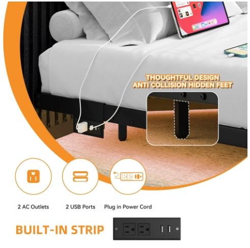 ·[Charging Station & Modern Convenience] Stay powered up and organized! This bed frame features a built-in charging hub with 2 AC Outlets, Type-C and USB ports, perfectly placed for easy access to charge your phone, tablet, and more. The sleek black iron construction adds a modern, industrial touch to any bedroom decor.