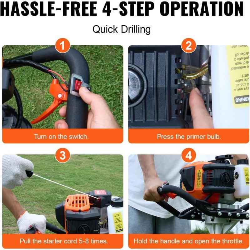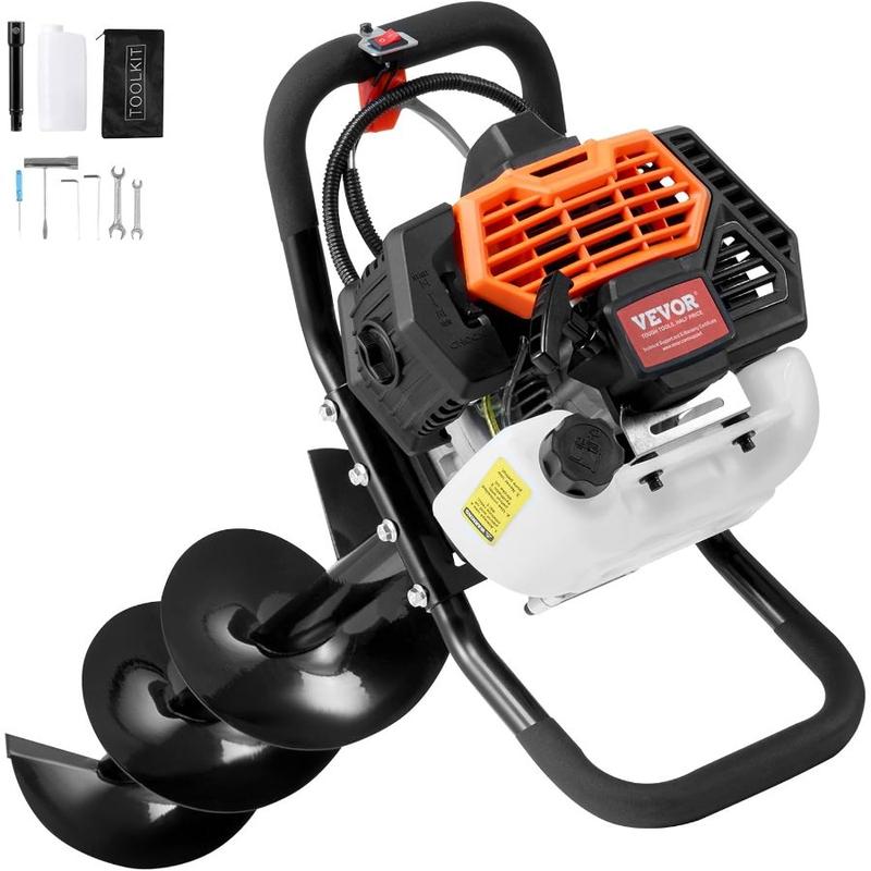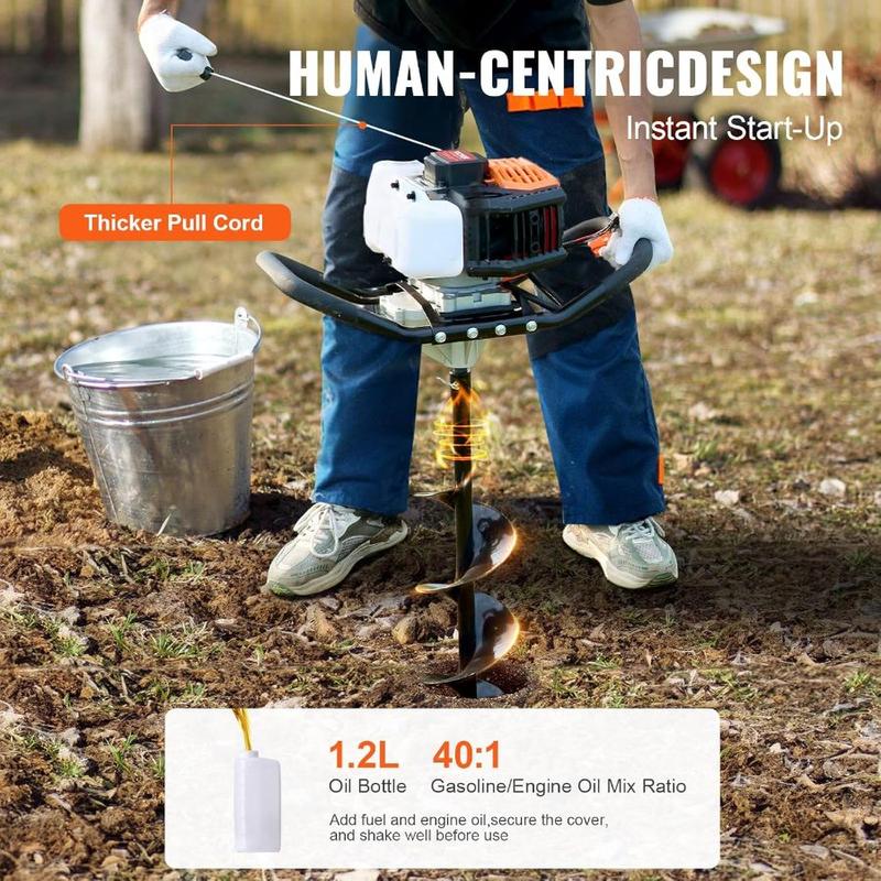 VEVOR Post Hole Digger, 52cc 1450W Auger Digger, Gas Powered Earth Digger with Two Drill Bit 6'' 10''and 3 Extension Rods, for Farmland, Garden and Plant, EPA Certification, Black+Orange+WhiteVEVOR Post Hole Digger, 52cc 1450W Auger Digger, Gas Powered Earth Digger with Two Drill Bit 6'' 10''and 3 Extension Rods, for Farmland, Garden and Plant, EPA Certification, Black+Orange+White