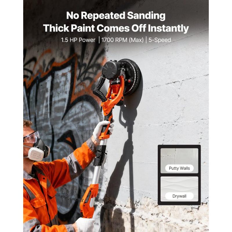 VEVOR Drywall Sander, 1150W Electric Drywall Sander, Popcorn Ceiling Removal Tool with Vacuum Dust Collection, 5 Variable Speed 800 - 1700 RPM, LED Light, Foldable Extendable Handle, 15 Sanding DiscsVEVOR Drywall Sander, 1150W Electric Drywall Sander, Popcorn Ceiling Removal Tool with Vacuum Dust Collection, 5 Variable Speed 800-1700 RPM, LED Light, Foldable & Extendable Handle, 15 Sanding Discs Multi-Speed Control 360° LED Lighting Detachable Disc Edge Powerful