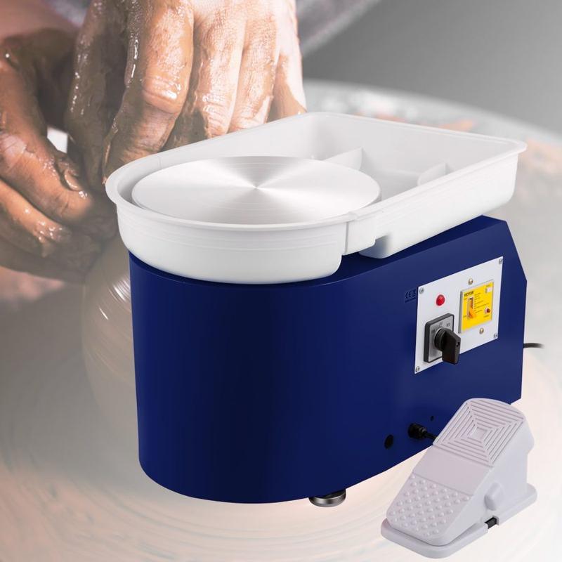 VEVOR 25cm Pottery Wheel Pottery Machine For Ceramic Work Ceramics ClayVEVOR Pottery Wheel 28cm Pottery Forming Machine with Detachable Basin Foot Pedal Control 350W Art Craft DIY Clay Tool for Art Craft Work and Home DIY Blue, 18 Piece 11" Large Turntable Easy Cleanup Basin Foot Pedal Adjustment Leakage Protection Device Additional Shaping Kit Wide Uses Product Dimension (L x W x H): 52 x 35 x 35 cm / 20.5 x 13.8 x 13.8in,Speed: 0-300 r/min,Turntable Material: