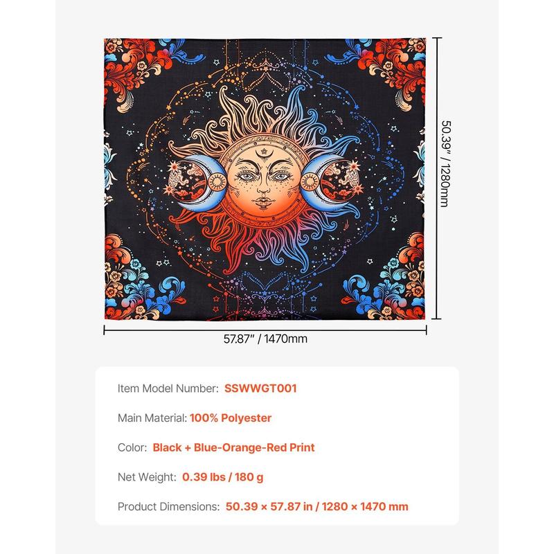 Premium Polyester Material: Soft to the touch and built to last, this high-quality polyester tapestry is wrinkle-resistant and super easy to clean-making it the great addition to your modern home!Retro Design Style: Featuring a vibrant sun and moon floral theme, this wall tapestry mixes classic charm with a modern twist.The radiant sun and moon surrounded by blooming flowers will bring life to any room, from bedrooms to living spaces.High-Definition Printing: With stunning HD printing, this aesthetic wall tapestry boasts vibrant colors and sharp images that add a unique artistic vibe to your home.Say goodbye to dull decor!Meticulous Lockstitch Craftsmanship: No more fraying!The edges are stitched to perfection, adding extra durability while keeping your vintage tapestry looking great for years.A beautiful piece that stands the test of time!Easy to Maintain: No fuss, no mess!This large tapestry is machine washable, dries fast, and is ready to hang again.Keep it fresh and clean with little effort for a hassle-free home upgrade!VEVOR Sun and Moon Tapestry, Psychedelic Mystic Floral Aesthetic Wall Tapestry, Vintage Wall Blanket for Home Decoration, Suitable for Bedroom, Living Room, Dorm (50.39 x 57.87 inches)