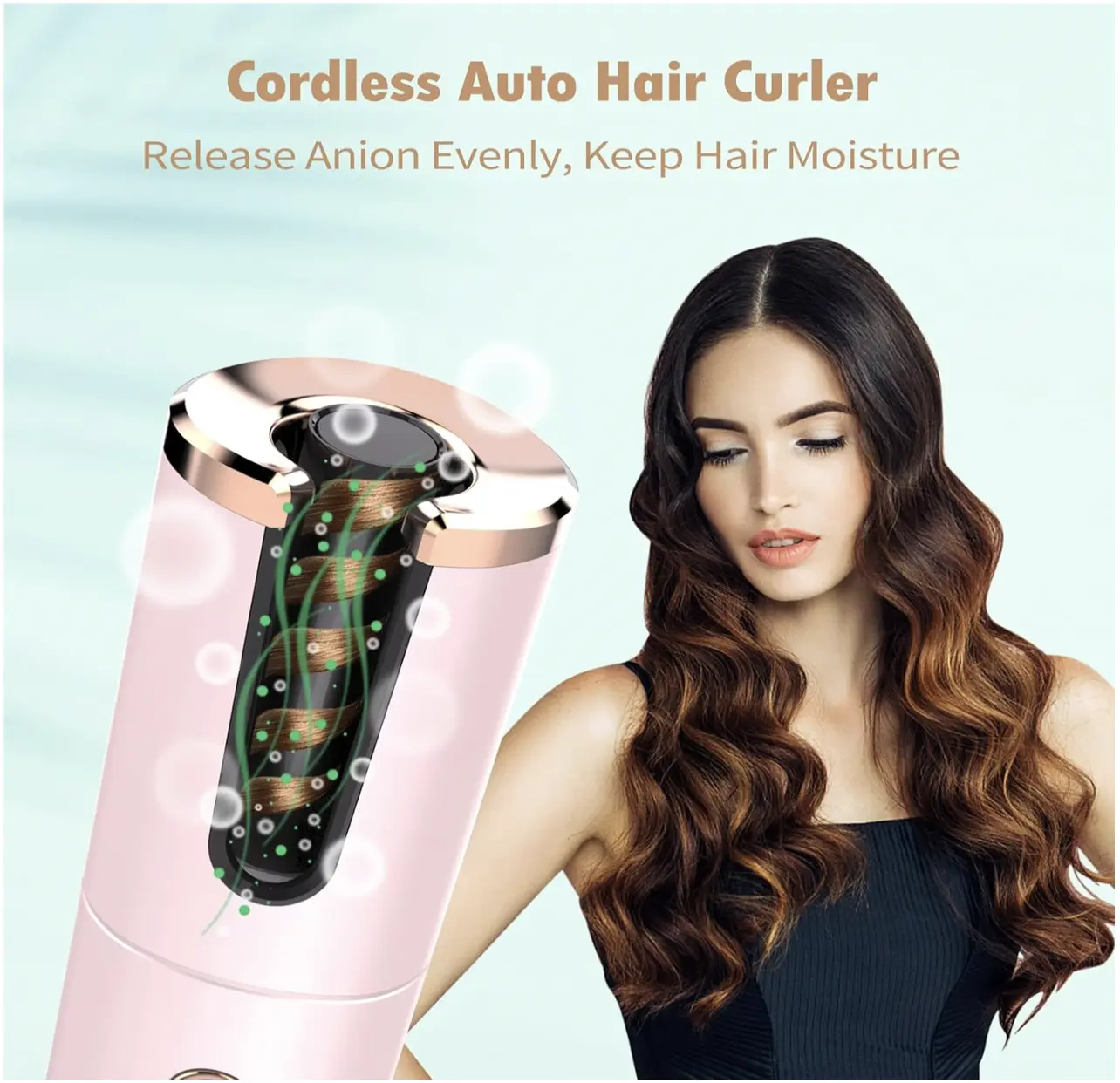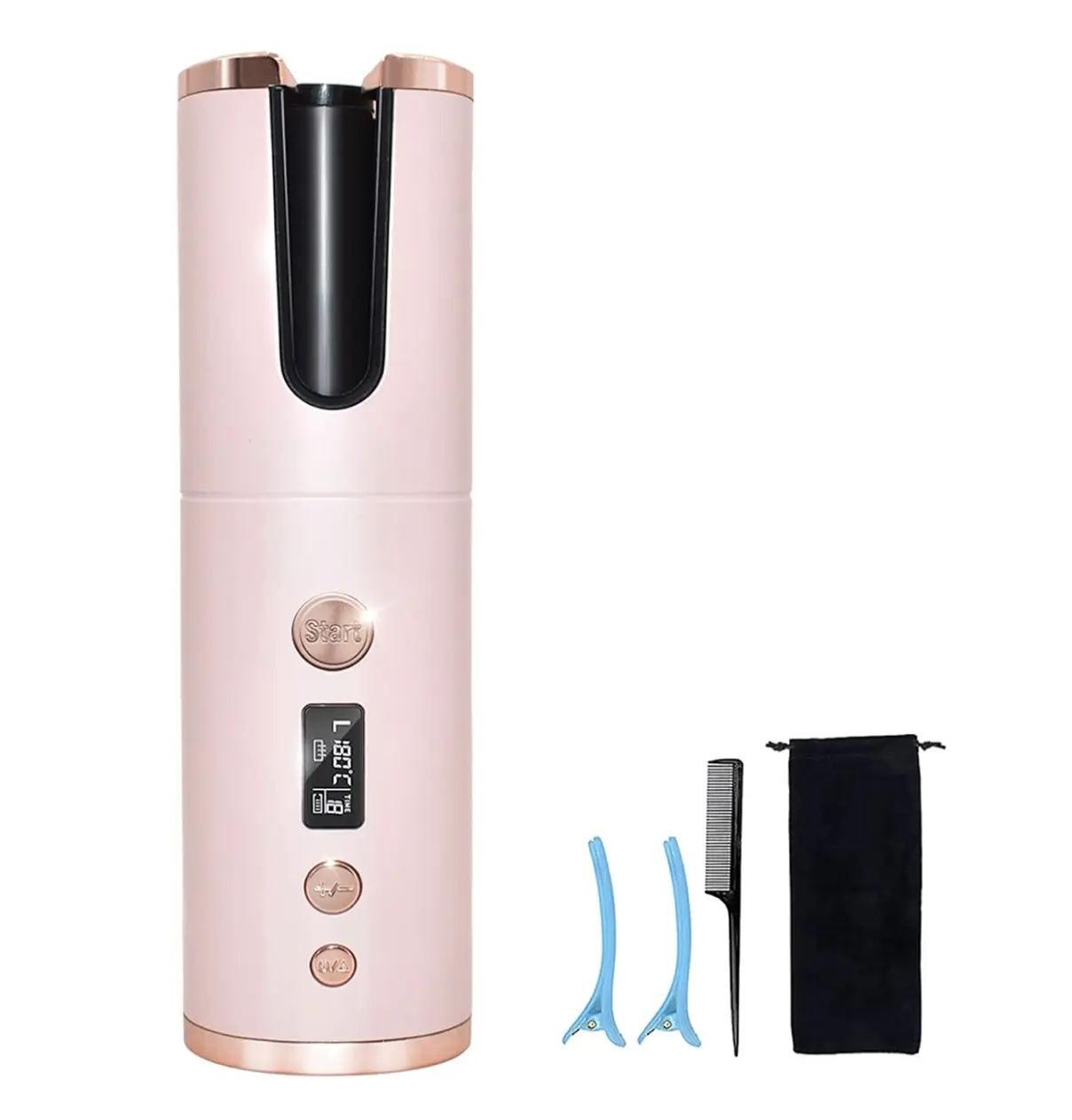 ·【One-button Cordless Automatic Curling Iron】Cordless automatic curling iron, without cable restriction, you can curl your hair anywhere. No skill is required, just put the right amount of hair into the curling tube. Press the button and wait a while to get beautiful curls. The product has automatic reverse (left/right) rotation function and anti-tangling design, simple and convenient.
