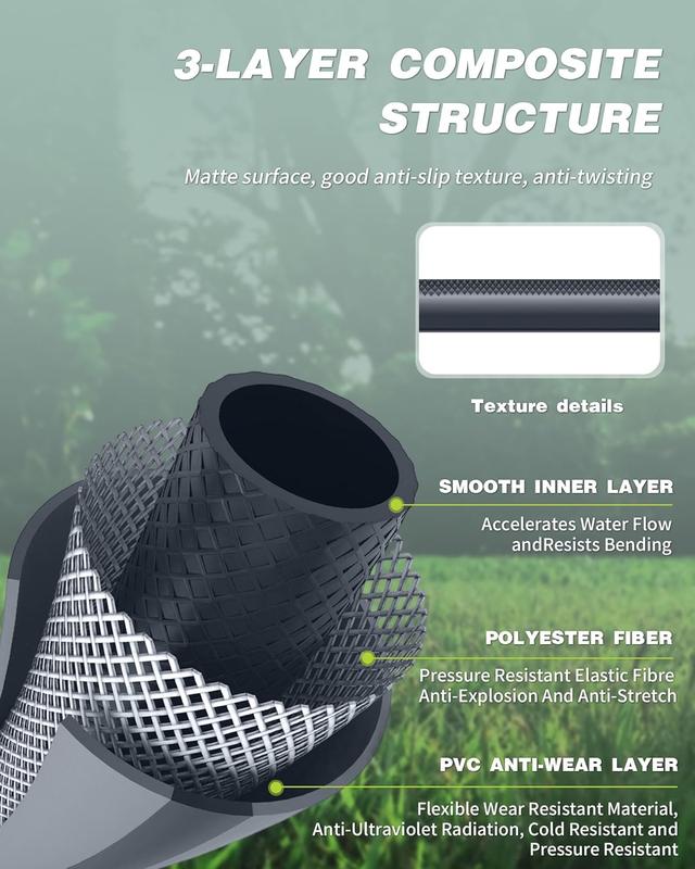 High-Quality Hose: This can handle up to 120 psi working pressure and 348 psi burst pressure, with a brass hose connector to prevent cracking or leaking.The internal support mesh also has superior kink resistance