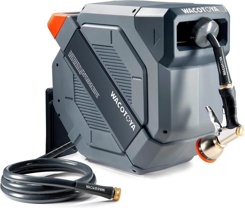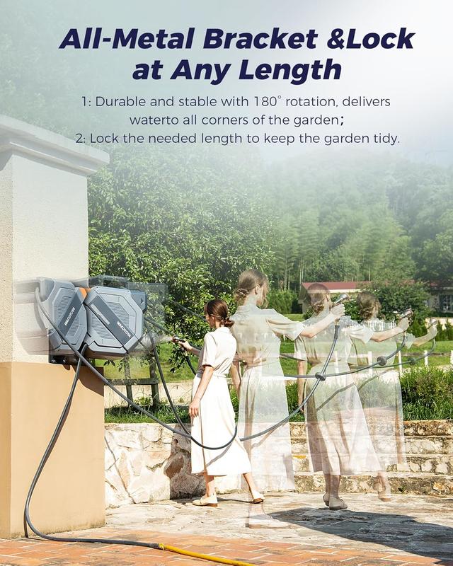 Any Length Lock: The self-winding hose reel allows for precise control of hose extension, with a maximum length of 100 feet.There is no excess hose exposed, keeping your garden tidy and organized