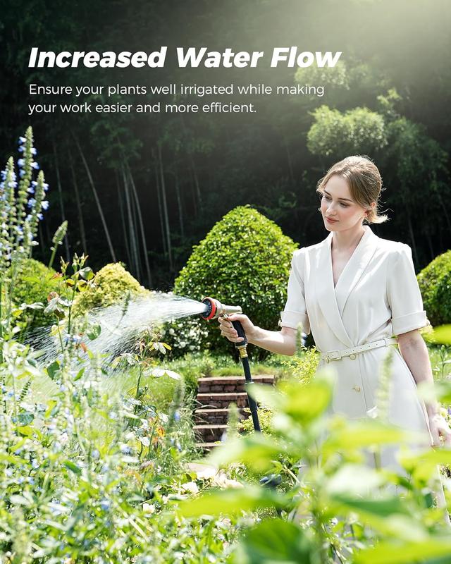 Full Metal Nozzle: Made of high-quality zinc alloy, this heavy-duty hose nozzle resists leaks, rust, corrosion, and wear.With nine adjustable watering patterns and an ergonomic, non-slip rubber grip, it provides a smoother watering experience