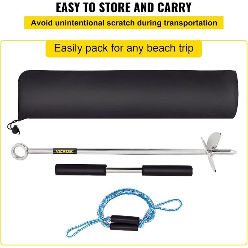 VEVOR Sand Anchor, 36 Length Auger to The Beach and Sandbar, 316 Stainless Steel Screw Anchor w/Removable Handle, Bungee Line Carry Bag, for Jet Ski PWC Pontoon KayakVEVOR Sand Anchor, 36 Length Auger to The Beach and Sandbar, 316 Stainless Steel Screw Anchor w/Removable Handle, Bungee Line Carry Bag, for Jet Ski PWC Pontoon Kayak