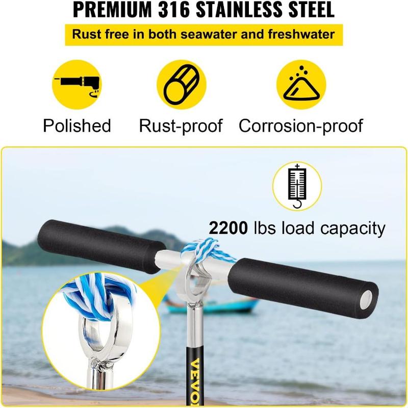 5. VEVOR Sand Anchor, 36 Length Auger to The Beach and Sandbar, 316 Stainless Steel Screw Anchor w/Removable Handle, Bungee Line Carry Bag, for Jet Ski PWC Pontoon Kayak