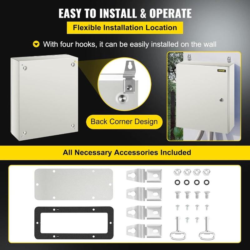 VEVOR NEMA Steel Enclosure, 20x 16x 8'' NEMA 4X Steel Electrical Box, IP66 Waterproof Dustproof, Outdoor/Indoor Electrical Junction Box, with Mounting PlateVEVOR NEMA Steel Enclosure, 20x 16x 8'' NEMA 4X Steel Electrical Box, IP66 Waterproof Dustproof, Outdoor/Indoor Electrical Junction Box, with Mounting Plate