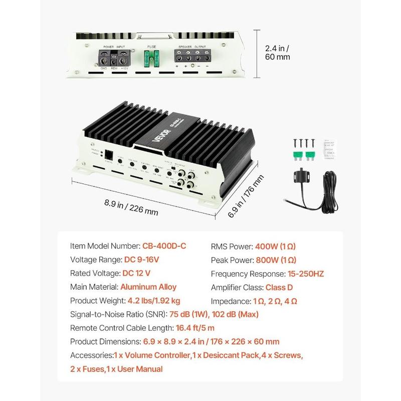 VEVOR 1200W RMS Class D Monoblock Amp, 1/2/4 Ohm Stable with Remote Subwoofer Level Control, Bass Boost Phase Shift - Mono Car Amplifier for SubwooferVEVOR 1200W RMS Class D Monoblock Amp, 1/2/4 Ohm Stable with Remote Subwoofer Level Control, Bass Boost Phase Shift - Mono Car Amplifier for Subwoofer