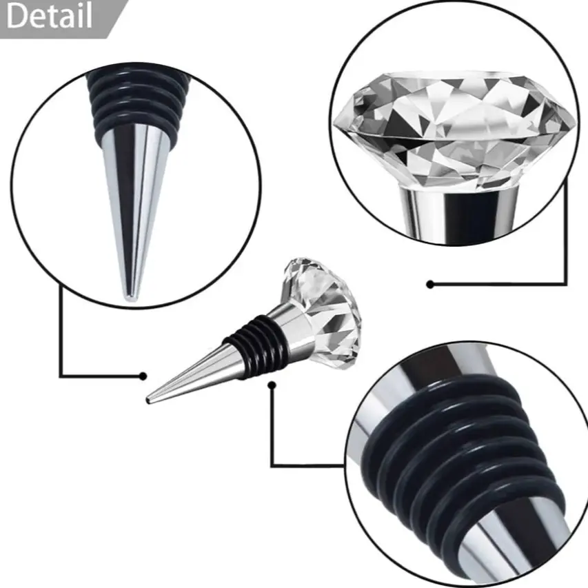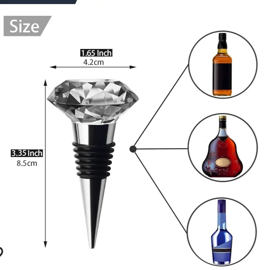 ·Crystal Design: These wine stoppers are made of crystal, which gives them a beautiful and eye-catching appearance. The diamond shape adds an extra layer of sophistication to your table setting.