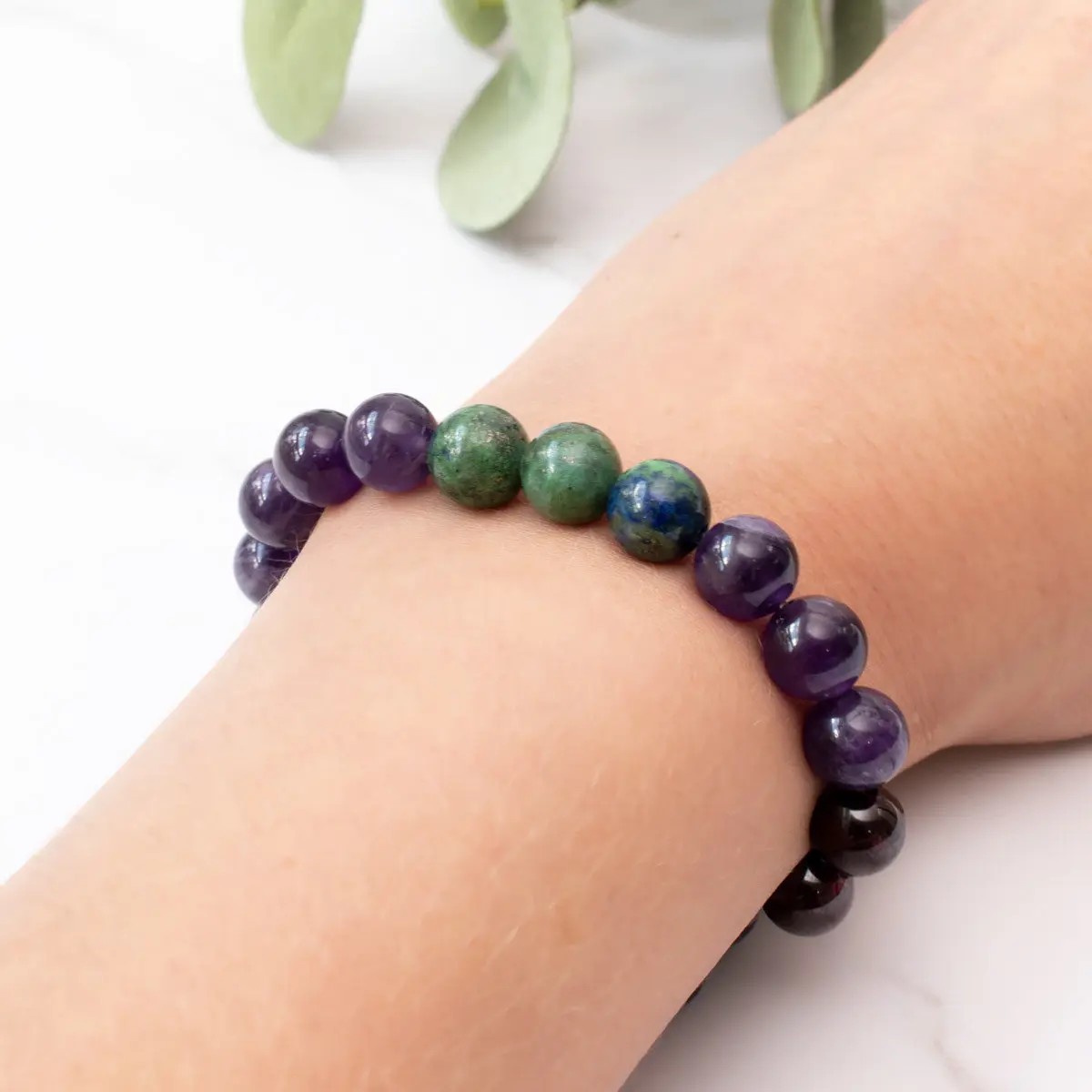 ·Azurite Malachite | Intuition, Vision & InsightAzurite Malachite is a protective and transformative stone. It deeply stimulates the third eye chakra, raises your consciousness to a higher level, and brings greater mental clarity, providing better awareness and vision about all areas of life. Azurite Malachite strengthens the astral and etheric bodies, making you less vulnerable to psychic attacks. It also stimulates the intellect and aids the assimilation of new information.