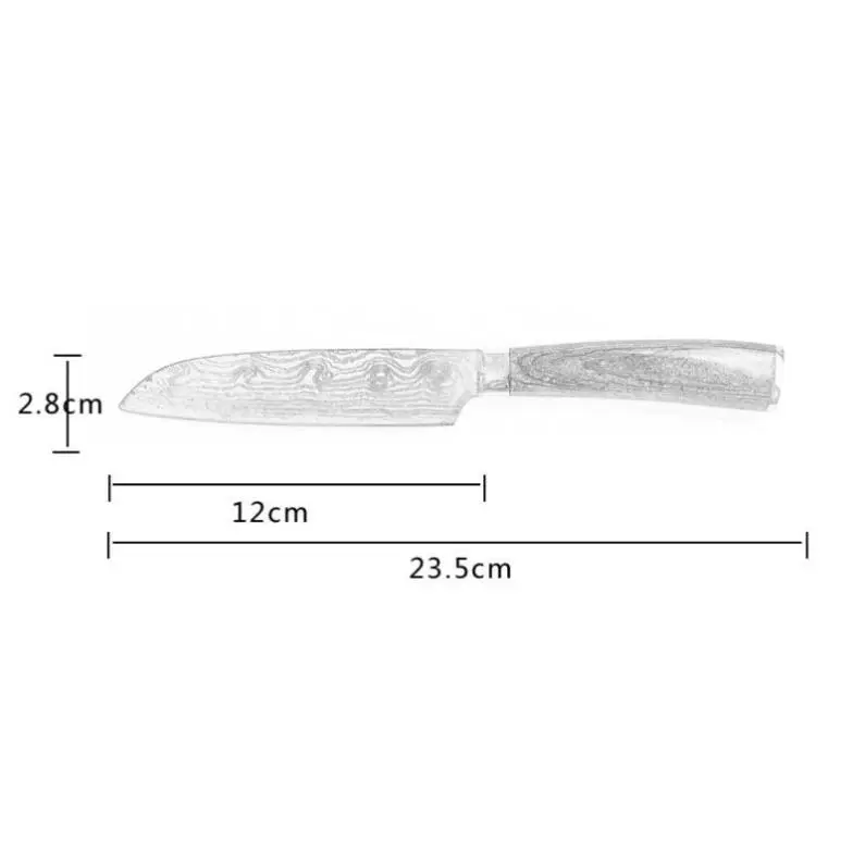 Tips: The blade is 7CR17 stainless steel, the surface of the laser Damascus pattern, very beautiful, good workmanship, razor-sharp, keep your kitchen away from the blunt knife, and enjoy your kitchen life!