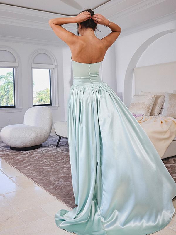 Ethereal and timeless, the Lael Dress is a statement of elegance, perfect for weddings, engagements, proms, formal events, summer soirées, and birthday celebrations. This strapless gown features a non-slip strap for a secure fit, while a delicate bowtie at the mid-front adds a touch of romance. The drop waist silhouette accentuates the figure, flowing into a fully trailing skirt that moves gracefully with every step. Designed with invisible pockets for effortless convenience, the dress is fully lined and finished with a back button closure and an invisible zipper, ensuring a flawless, seamless look from every angle.