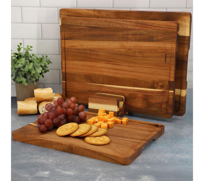 5. MegaChef 3pc Acacia Wood Cutting Board Set withBase