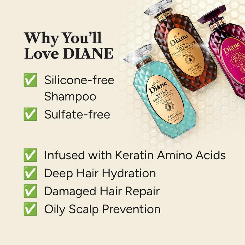 Experience the pinnacle of Japanese hair science. The Diane Perfect Beauty series combines the power of Organic Argan Oil with our proprietary Beauty Keratin to target specific hair concerns through advanced sensor technology.
