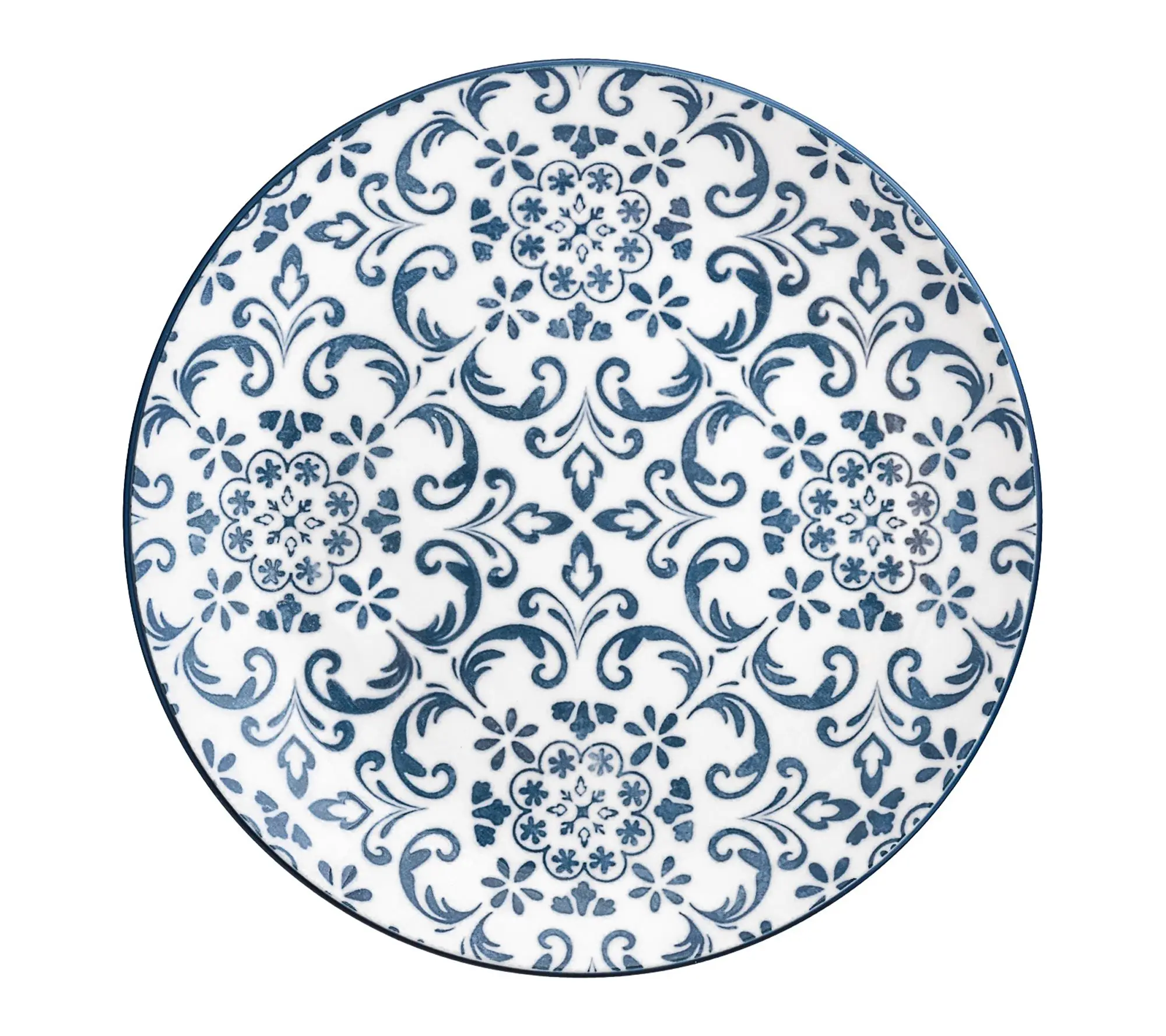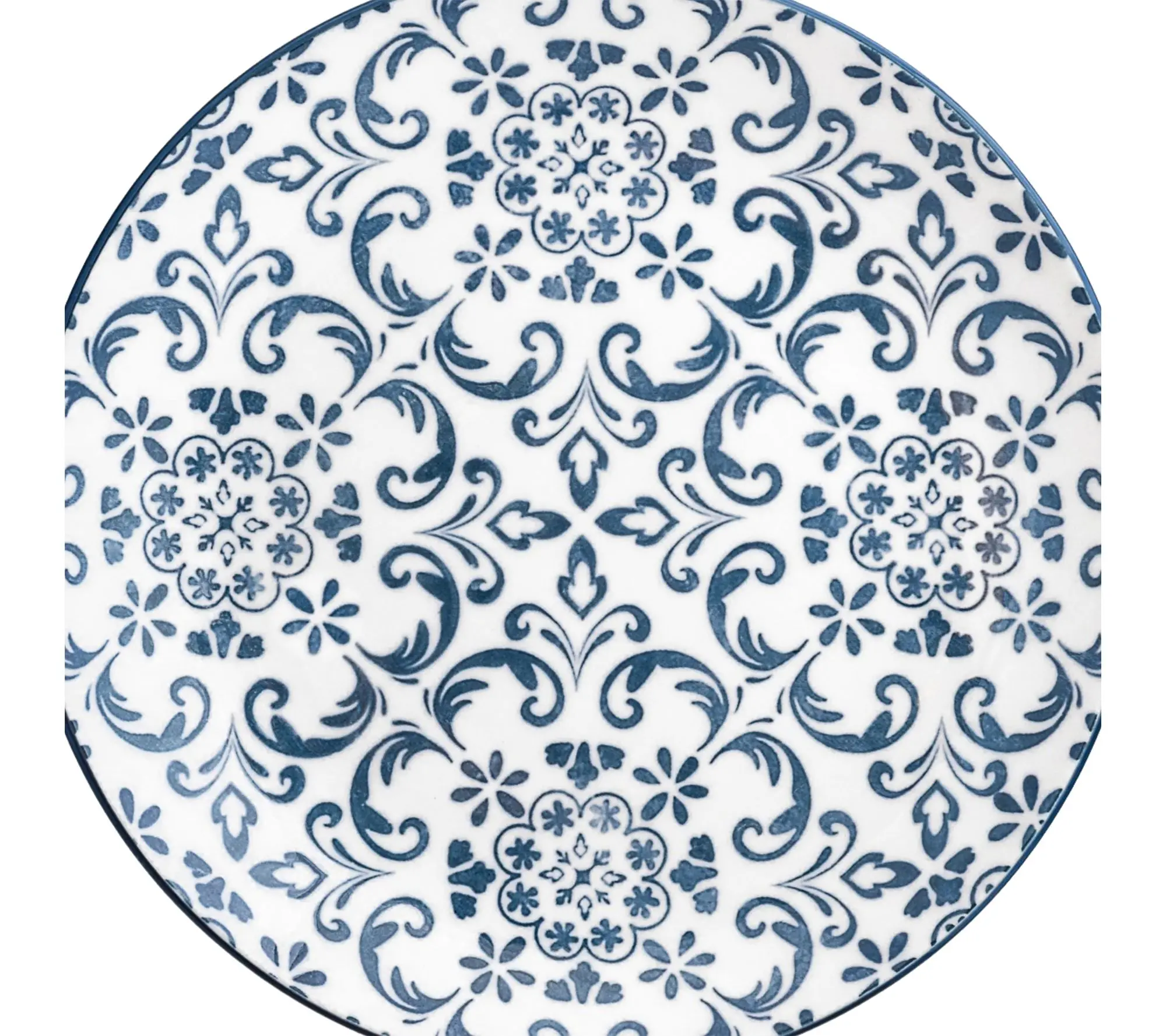·Tile-inspired blue pattern on crisp white background brings Mediterranean style to your table