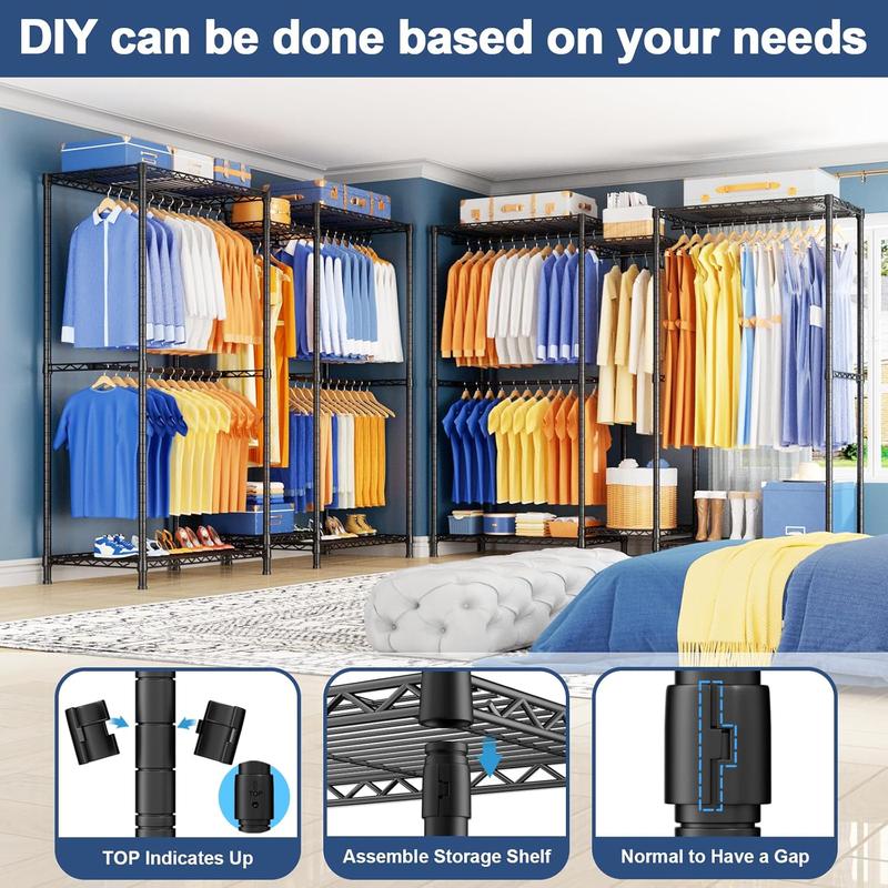 ·▶【PORTABLE & MULTI-SCENARIO】Our clothes racks for hanging clothes can be flexibly and freely assembled,You can take portable clothes rack anywhere you need it,Such as bedroom, laundry room, living room, cloakroom, hallway, etc,Coupled with the Anti-tip Device to enhance the stability of the heavy duty clothes rack,You will get a flexible closet organizer and storage system,Can be mobile or fixed!