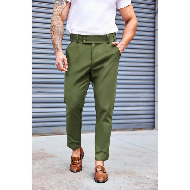 Mens Chino Pants Slim Fit Flat Front Stretch Skinny Tapered Dress Pants Casual Trousers Menswear Plain