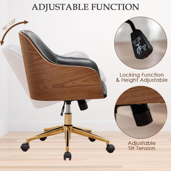 ·Premium Quality Materials: Our Office Desk Chair is crafted from high-quality genuine leather, offering a luxurious feel and durability, combined with a modern walnut wood curved plate design that enhances any home office aesthetic.