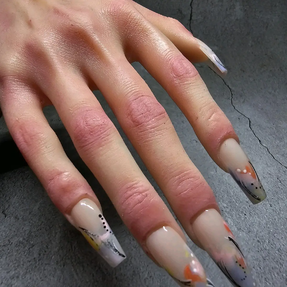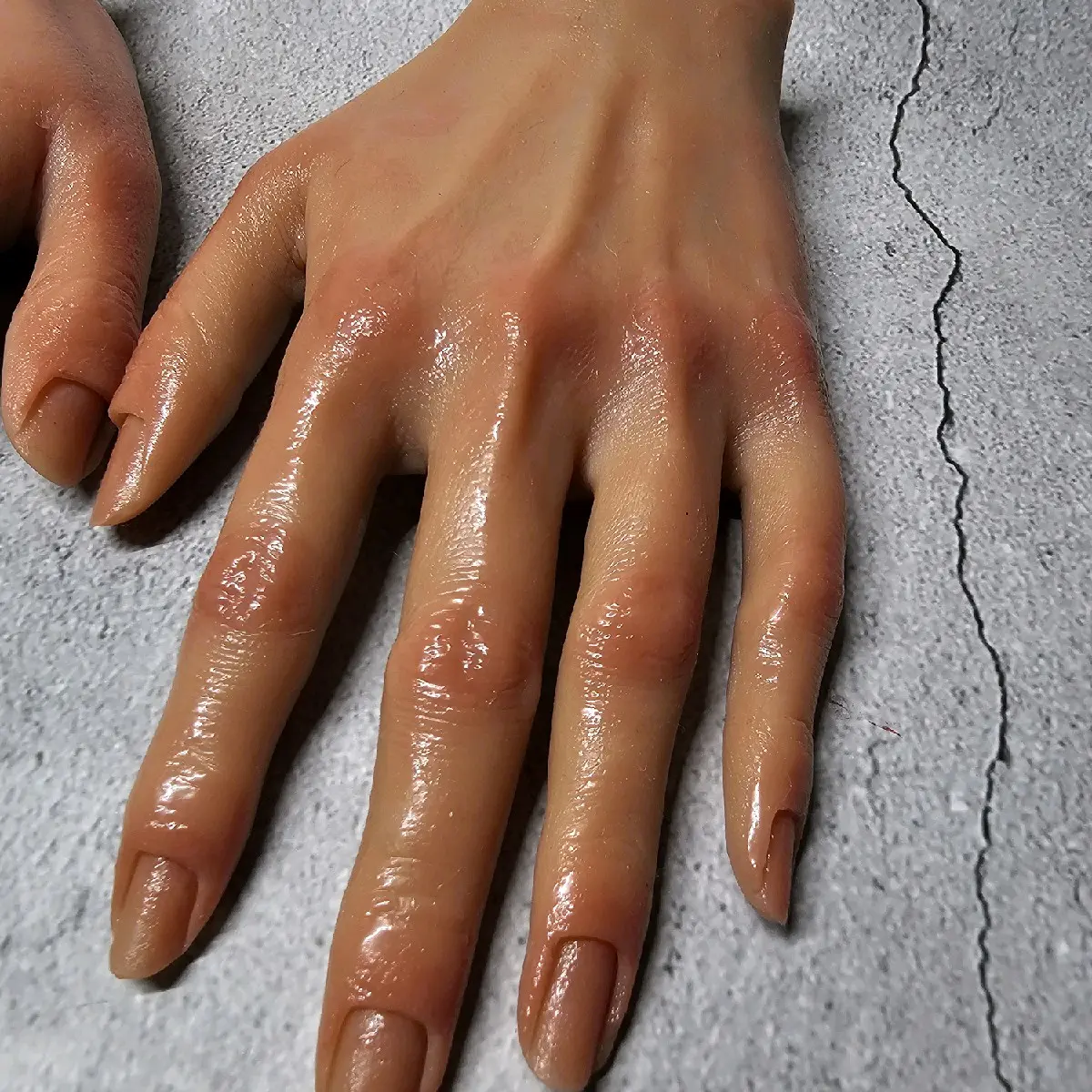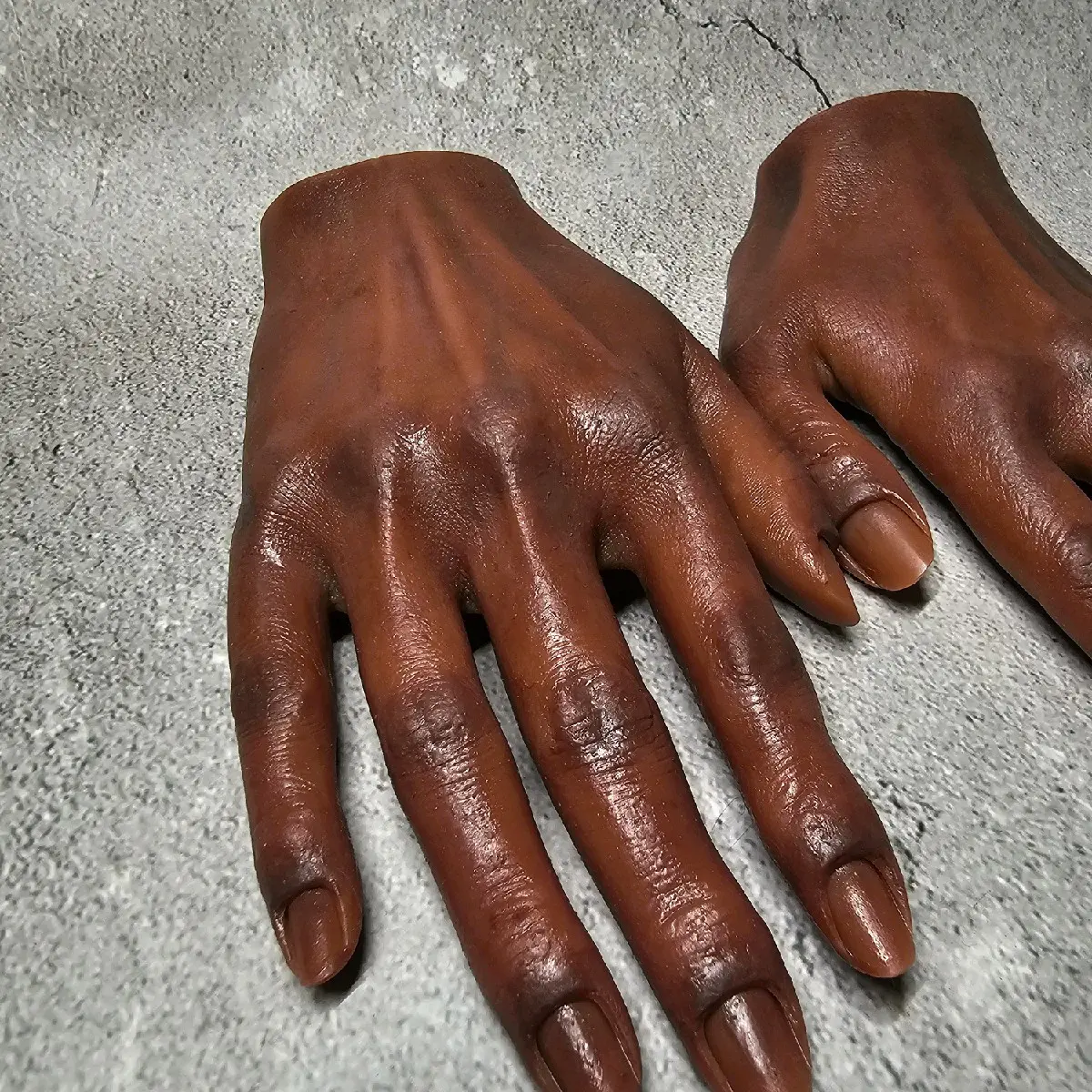 Introducing our Realistic Silicone Hand, the ultimate nail display for showcasing your nail art! Whether you need a left or right hand, each one is hand painted and very detailed to provide a realistic appearance. The hand is washable, bendable, and features a hand skeleton for a true-to-life display. Please note that due to the nature of this product, it is non-refundable but please reach out if any concerns. Highlight your nail art with our Realistic Silicone Hand today!