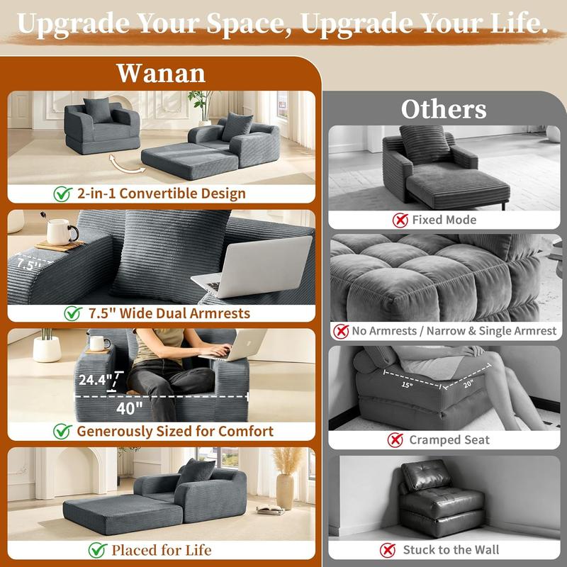 ·【Versatile Comfort & Space-Saving Design】 This cozy recliner sofa bed easily converts into a space-saving armchair. The single-size version is ideal for small space, suitable for watching TV, using your phone,reading, or taking a relaxing nap.