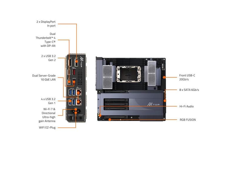 GIGABYTE W790 AI TOP Intel Xeon W Processor Motherboard (LGA4677), E-ATX, DDR5, 6x M.2, PCIe 5.0, Thunderbolt 4, WIFI7, 10GbE LAN, EZ-Latch