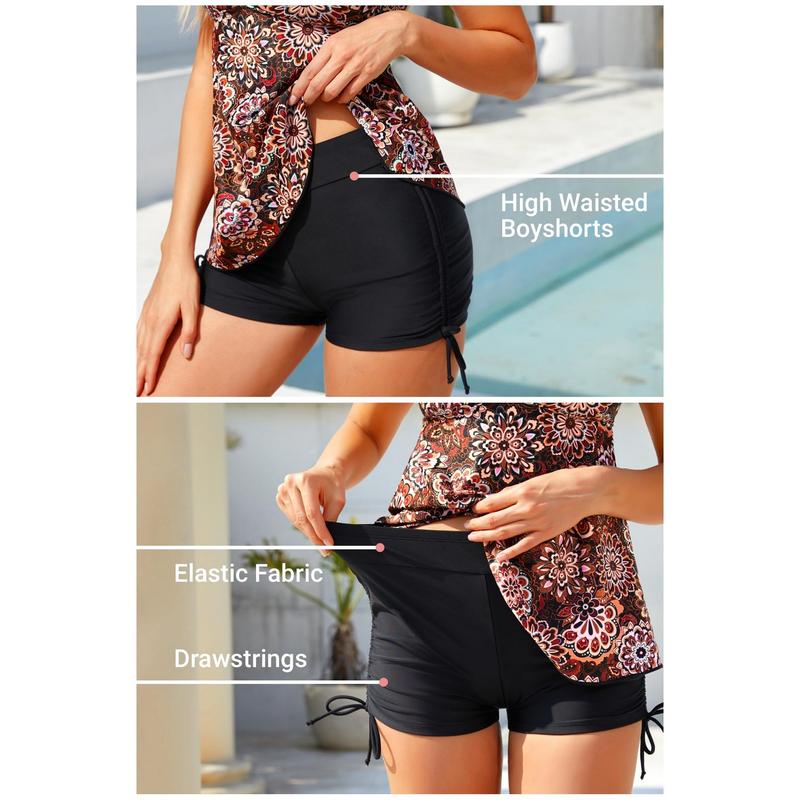 ·Comfortable High-Waisted Bottoms: The high-waisted boyshort bottom delivers full coverage and gentle tummy control, while adjustable side ties let you fine-tune the fit for a flattering silhouette. Made with stretchy, secure fabric, it stays comfortable during swimming, sunbathing, or seaside strolls.