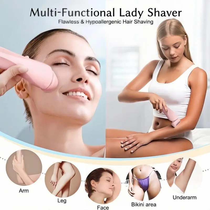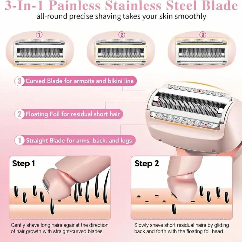 【Silk Glide Technology】: The unique silk glide feature ensures a smooth and painless shaving experience, reducing irritation on sensitive skin. 【2-in-1 Functionality】: This electric shaver offers dual functionality for shaving and hair removal, meeting various grooming needs in one device. 【Sensitive Skin Approved】: Designed for sensitive skin, this device minimizes discomfort and irritation, making it suitable for everyday use. 【Wet and Dry Use】: Versatile for use in both wet and dry conditions, allowing flexibility for personal grooming routines wherever you are. 【Durable ABS Material】: Constructed from resilient ABS material, ensuring longevity and resistance against wear and tear for long-term use.