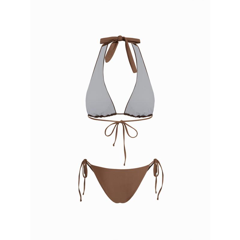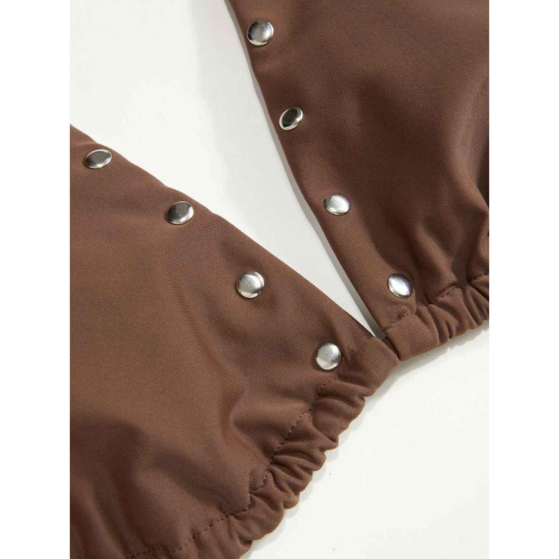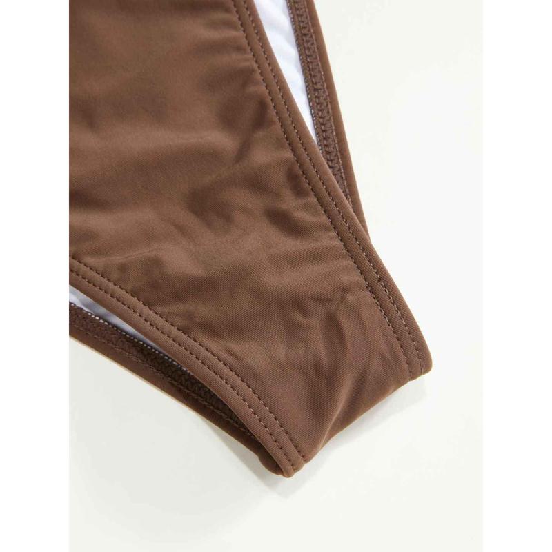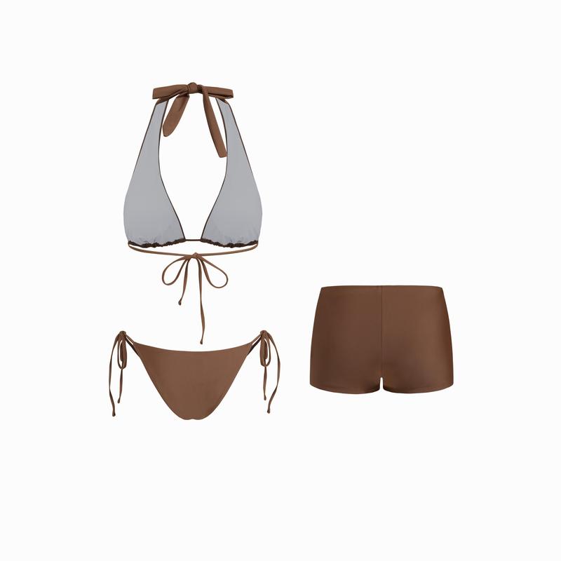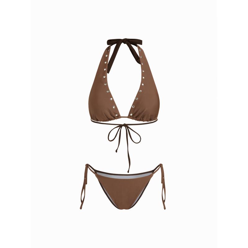 5. Cider Halter Neckline Rivet Knotted 3 Piece Bikini Set With Shorts