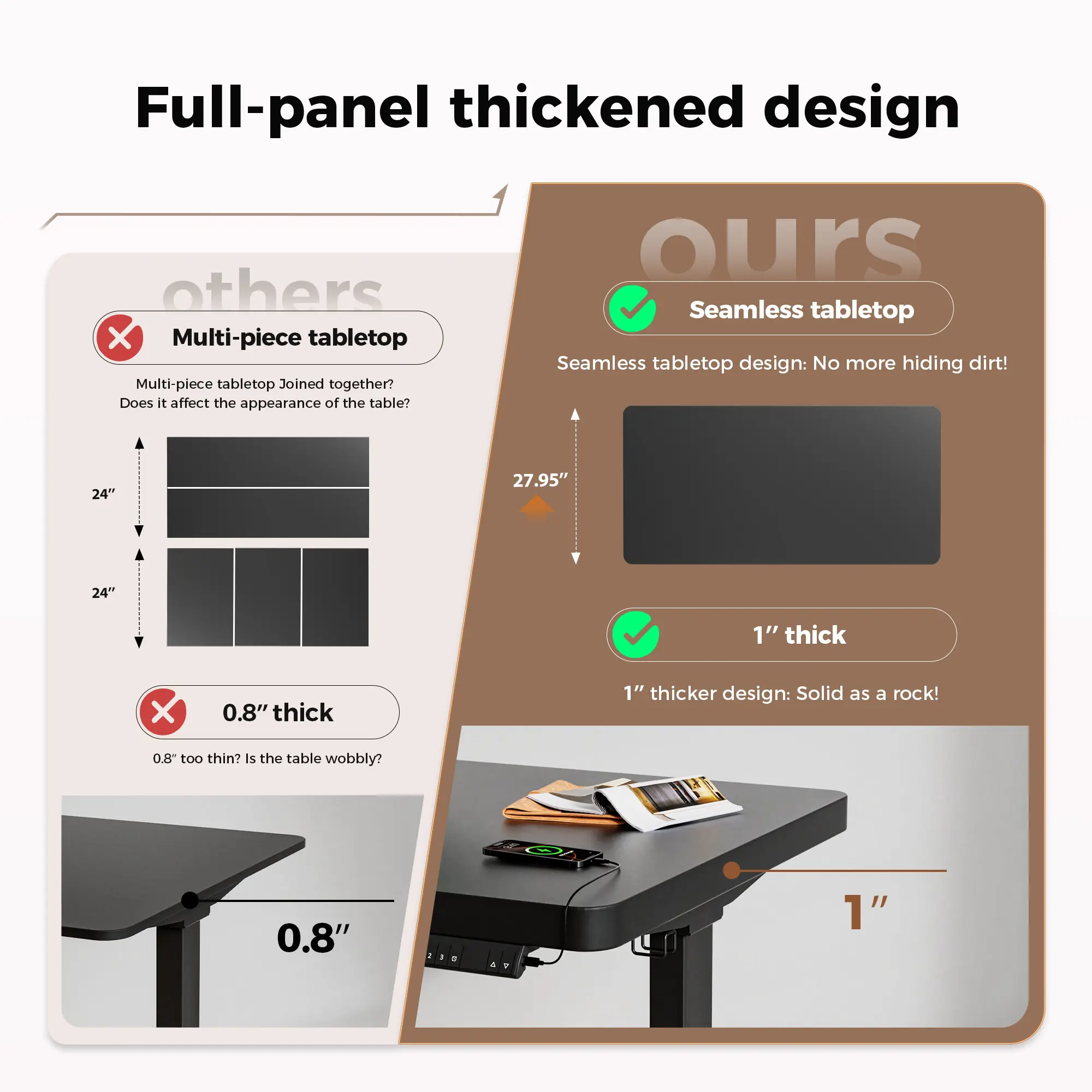·Seamless Thickened Tabletop with Rounded Corners:Features a one-piece seamless tabletop upgraded from splice board design, with increased thickness from 0.8" to 1" for improved durability and stability. The rounded corners replace sharp edges, offering enhanced safety and a smoother, more refined premium appearance.