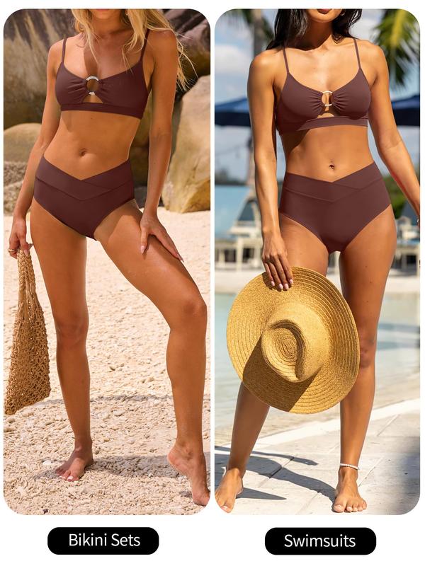 ·Features - Women's two piece bikini sets, triangle bikinis, spaghetti straps tankinis, o ring, cut out, mid rise, cute cheeky bathing suits. This womens swimsuits perfect for resort wear, cruise essentials, swimming pool and beach vacation swimwear clothes in summer 2026.