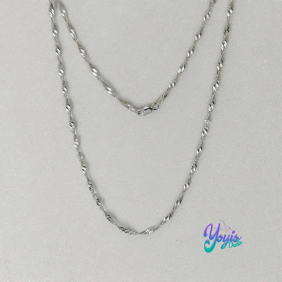 The twisted serpentine design of the chain adds a touch of elegance and sophistication to any outfit. The chain is available in two lengths, 18 inches and 20 inches.