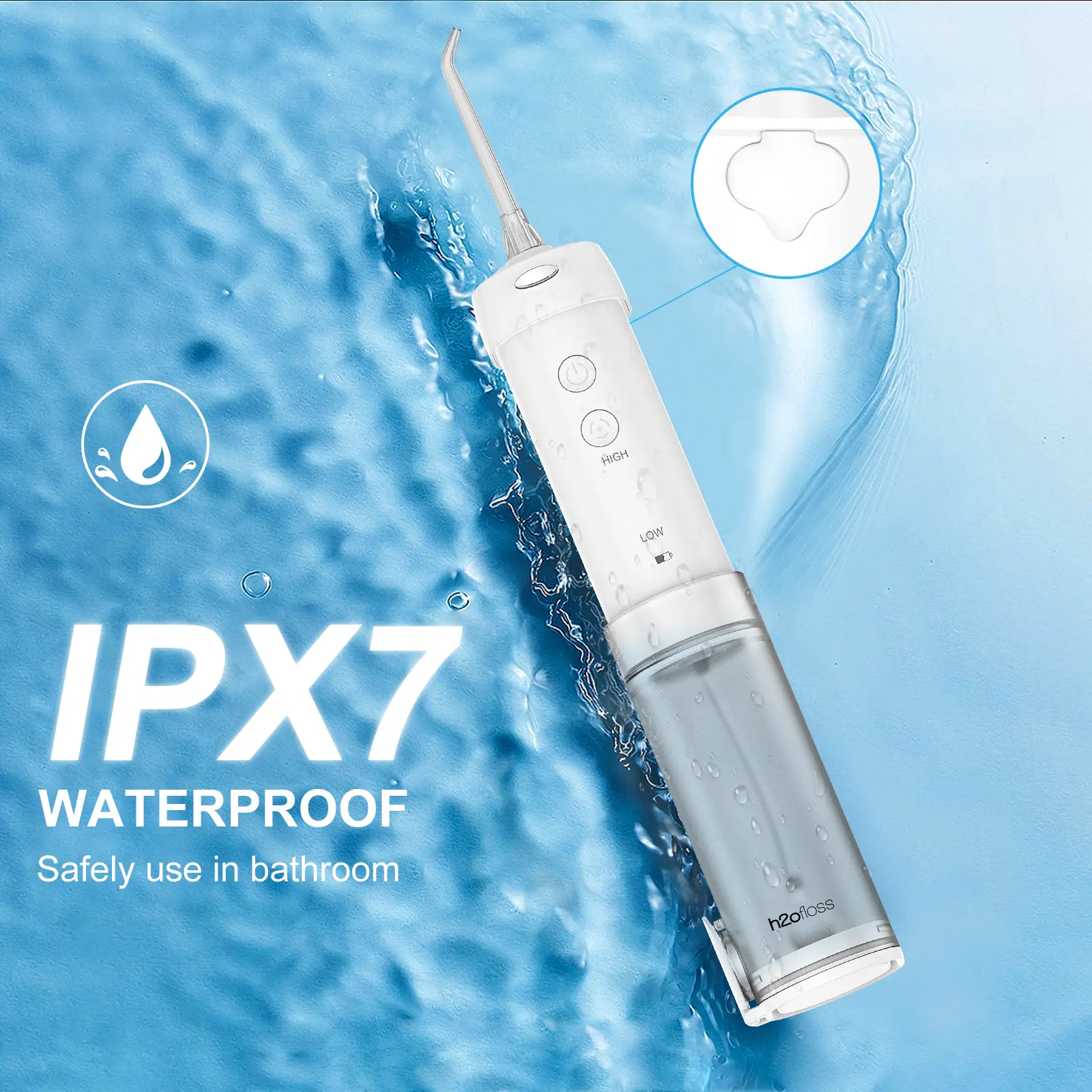 300ML Rotating detachable Reservoir &UpgradedIPX7 Waterproof】With 300ml detachable water tank,the electric flosser ensures uninterrupted teeth cleaningFeaturing a wide-angle design, the water jet flosserfacilitates easy cleaning of the interior of the water tankUpgraded lPX7 waterproof standard achieves internalwater-electricity separation and enhancing waterprootperformance and durability.