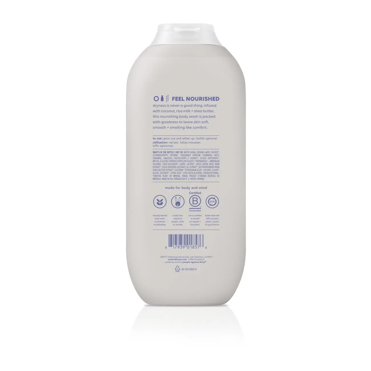 ·Coconut, Rice Milk + Shea Butter: Infused with the goodness of coconut, rice milk and shea butter, this body wash nourishes your skin and keeps it moisturized while leaving behind a sweet comforting fragrance.