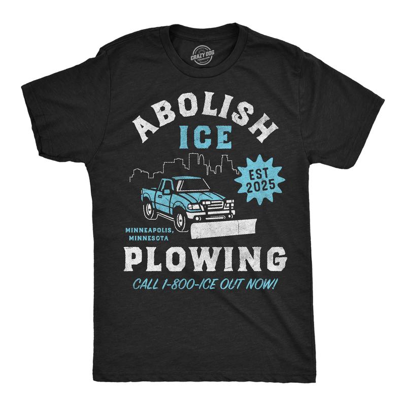 This is a Heather Black - Abolish Ice Plowing Soft Comfortable Funny T Shirt for Men sold by Crazy Dog T-Shirts.