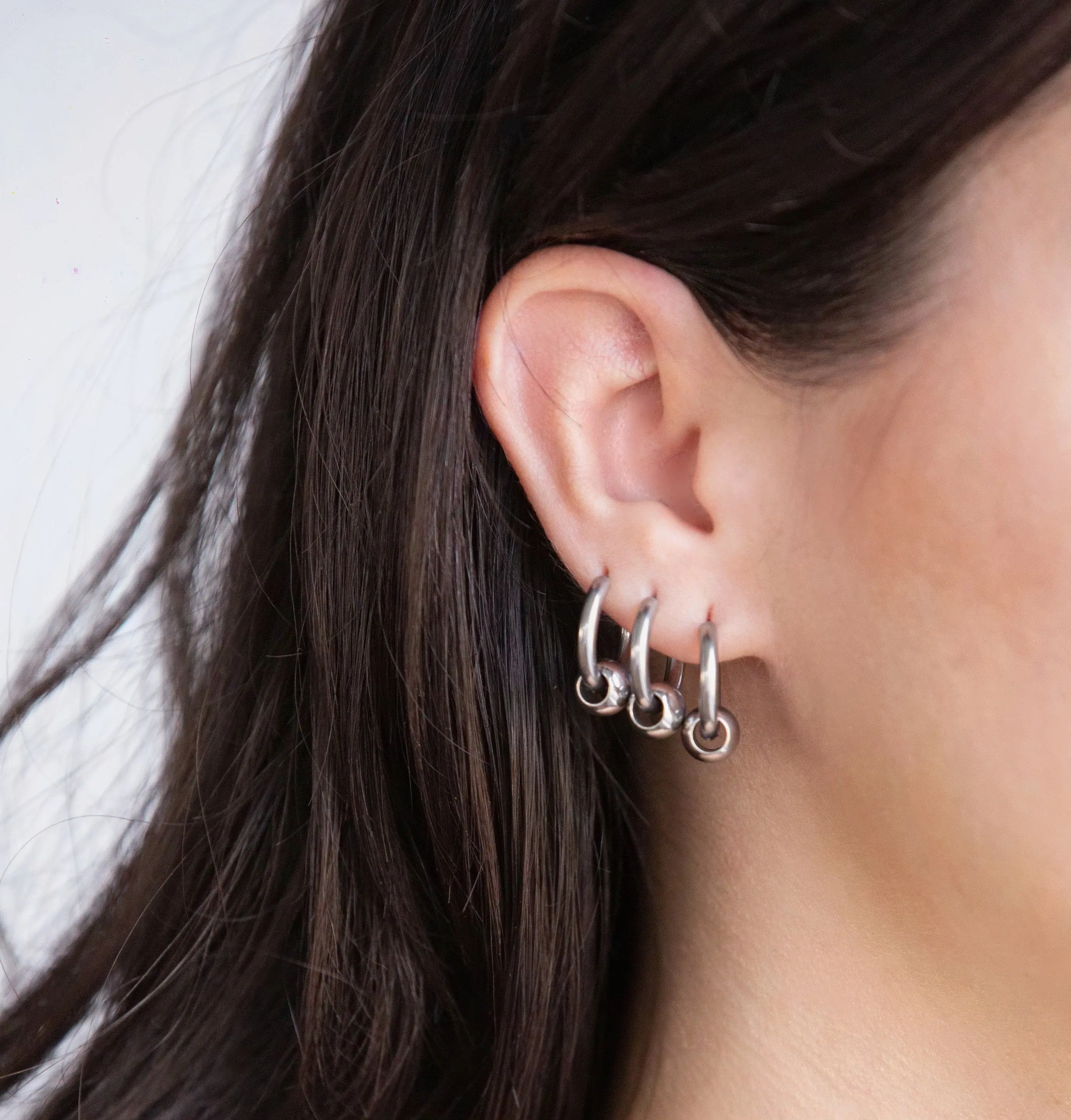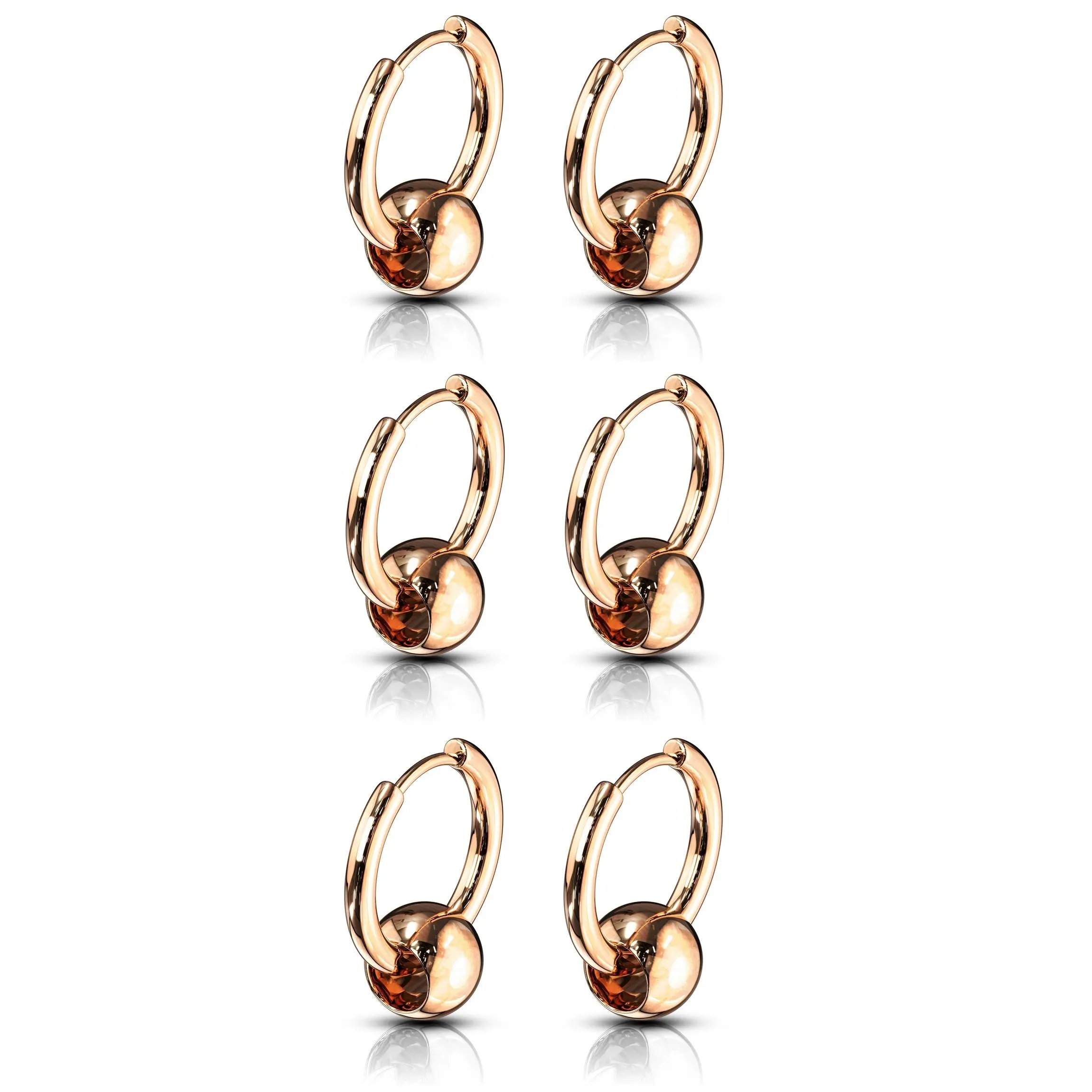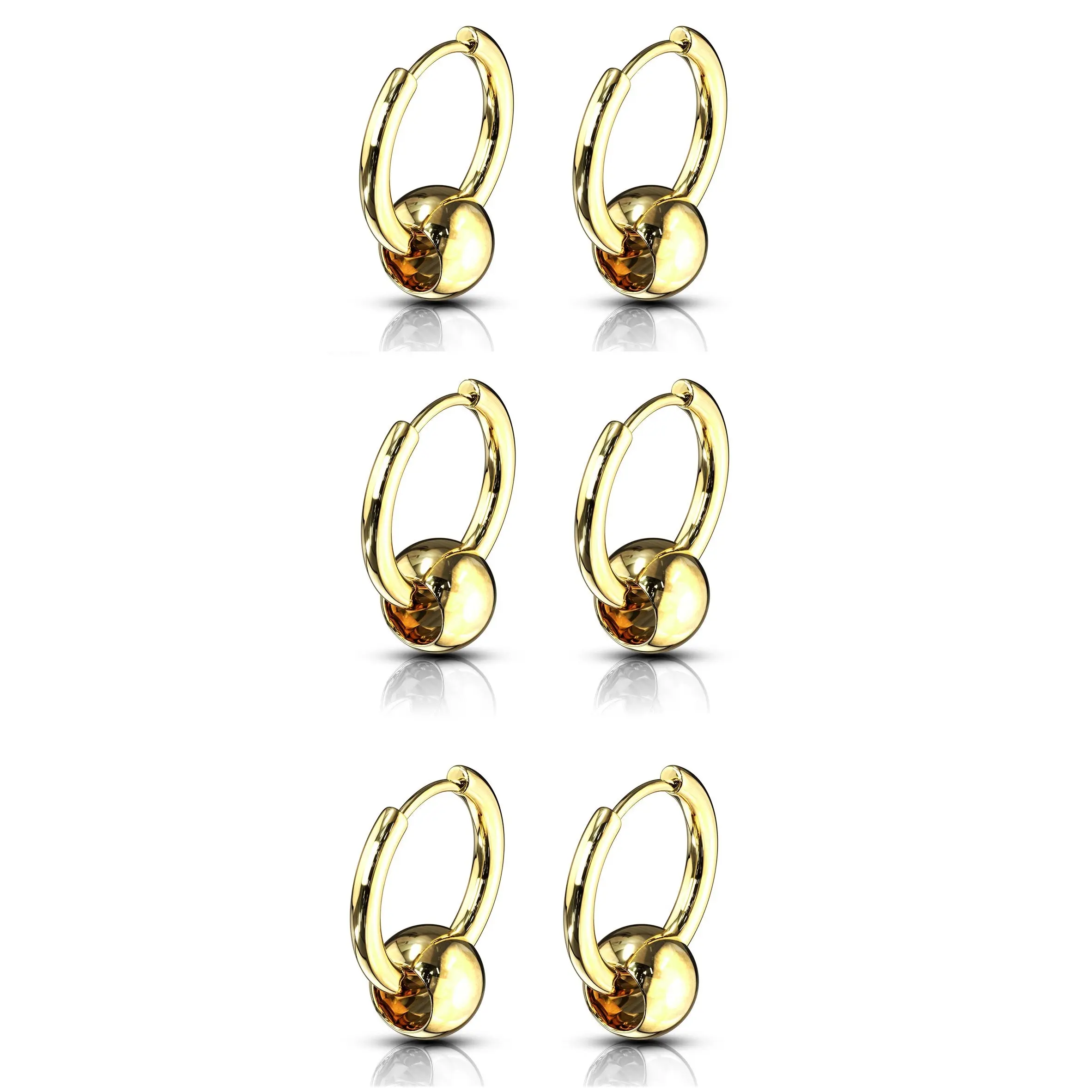 5. Set of 3 Pairs of Faux Captive Bead Hinged Hoop Earrings - 316L Stainless Steel