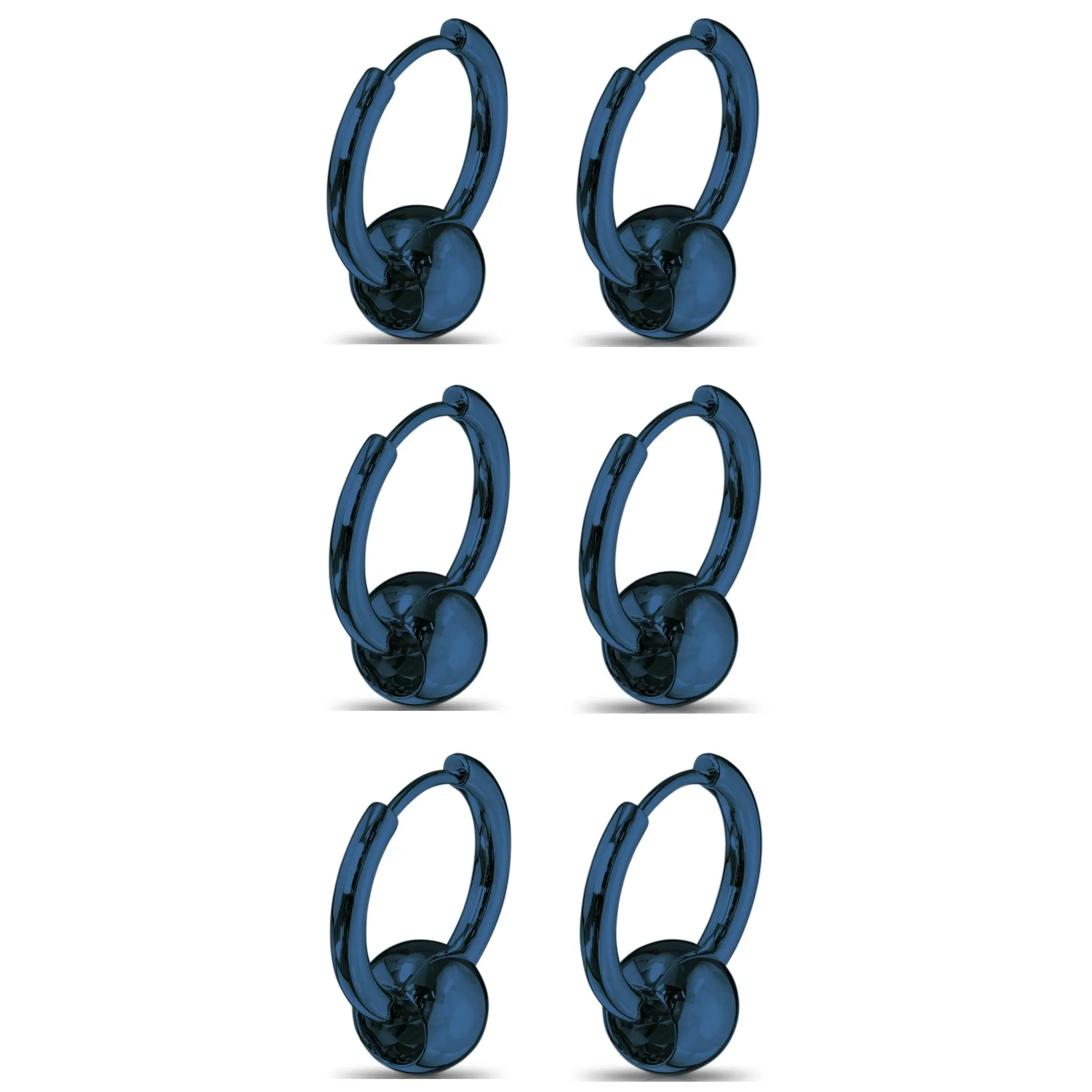 MATERIAL: 316L stainless steel GAUGE/BAR THICKNESS: 20GA (0.8mm) DIAMETER LENGTH: 1/2" (12mm) BALL SIZE: 8mm SET OF 3 PAIRS