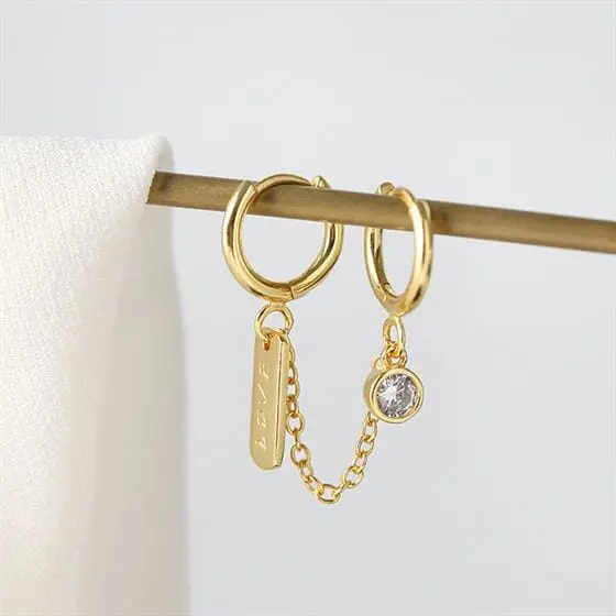 Fashion Doule Hole CZ Love Letters Rectangle 925 Sterling Silver Hoop Earrings