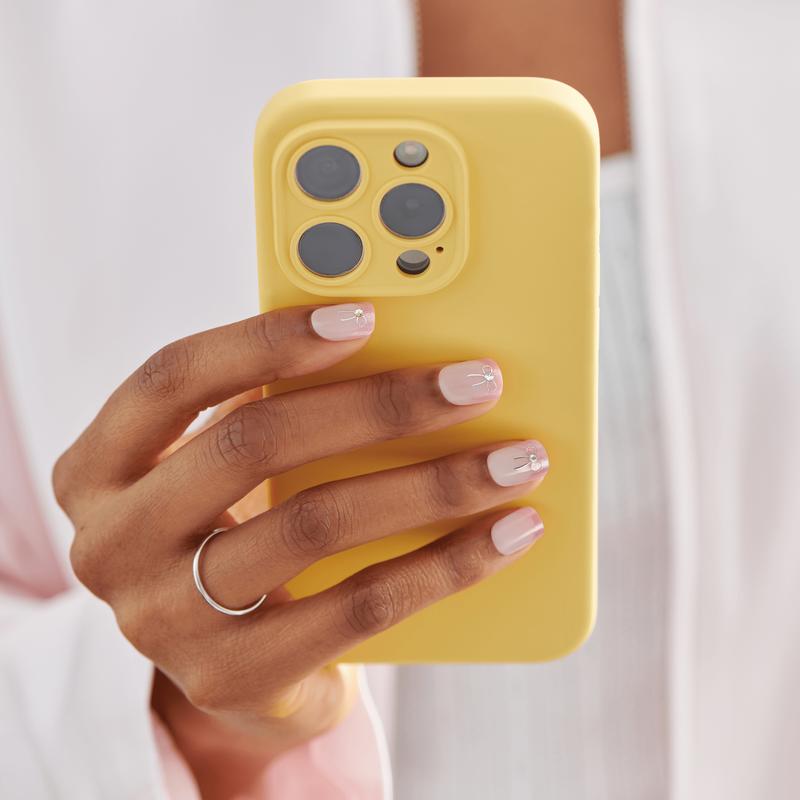 A sweet spring update on French tips, this set pairs white nails with pink magnetic French accents and bow-shaped gem details. Get ready to flutter through spring with nails that have a natural look and feel.