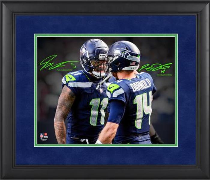 Showcase the dynamic duo of the Seattle Seahawks with this framed 11" x 14" spotlight photograph featuring Sam Darnold and Jaxon Smith-Njigba with facsimile signatures. Officially licensed by the NFL and ready to hang in your fan cave, living room, office, or game room, this high-quality framed photo captures standout moments from two of Seattle’s most exciting playmakers. Made in the USA with a sturdy frame and bold team imagery, it brings instant Seahawks pride to any space and makes a perfect gift for die-hard fans and collectors alike.