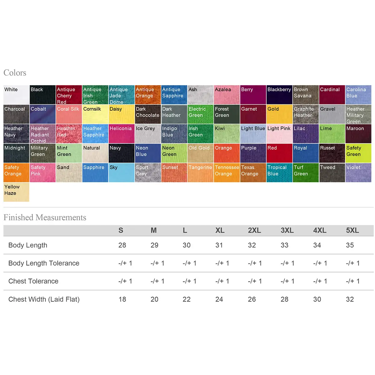- Antique colors & Sport Grey are 90/10 cotton/polyester