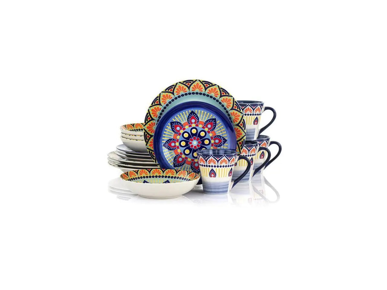 Elama Zen Blue Mozaik 16 Piece Luxurious Stoneware Dinnerware with Complete Setting for 4 16pc