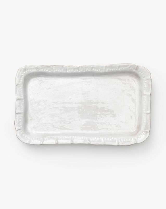 A delicate ruffled edge brings a touch of charm to this hand-finished ceramic tray. Its subtly textured glaze and graceful silhouette make it perfect for serving, styling, or displaying everyday favorites with an elevated, collected feel.