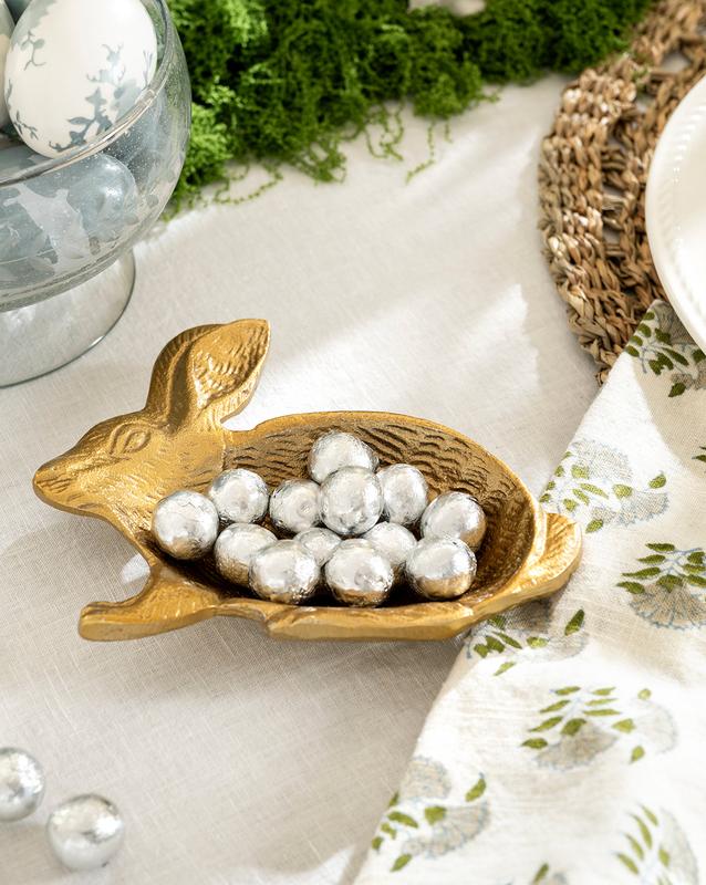 Charming and beautifully detailed, this brass-finished bunny dish brings a playful yet refined touch to spring decorating. Perfect for holding treats, trinkets, or small seasonal accents, it layers effortlessly into a vignette or centerpiece. A sweet, sculptural accent that adds warmth and whimsy to any room.